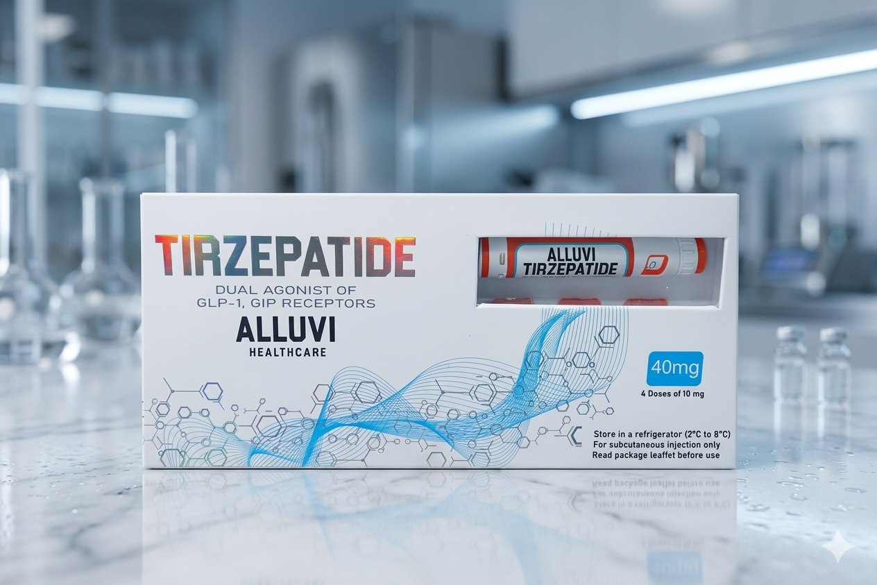 Tozerpatide 40mg da ALLUVI Healthcare. Caneta pré-preenchida com 4 doses de 10mg. dual agonista de receptores GLP-1, GIP para emagrecimento avançado. Envio imediato do Brasil — sem esperar importação! Produto disponível em estoque no Brasil.